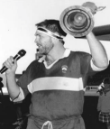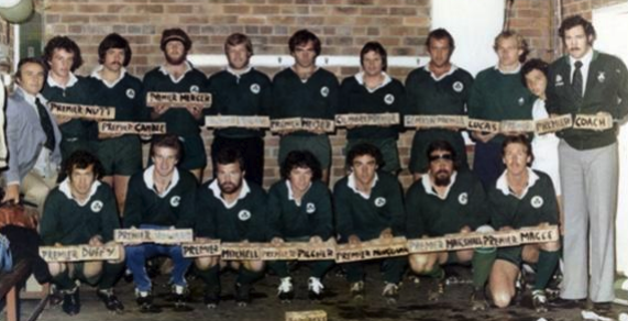 Bricks: In 1979, three weeks out from the finals, Barry Stumbles led all three teams on a two kilometre run from Nicho Park to Hoopers Pub. Waiting at Hoopers were 45 schooners, one for each player. After downing the beers, he lined up the first graders and led them on a run up Hospital hill past the hospital to a vacant building site. Here, under a sheet of iron, he had 15 piles of bricks, in sets of two, one with a player’s name on it and the other with the word “Premier” inscribed. From then until the final each player was expected to take both bricks with them at all times – at training, work, eating and even sleeping with the exhortation “learn to love the bricks”. Three weeks later they won the club’s initial first grade premiership.